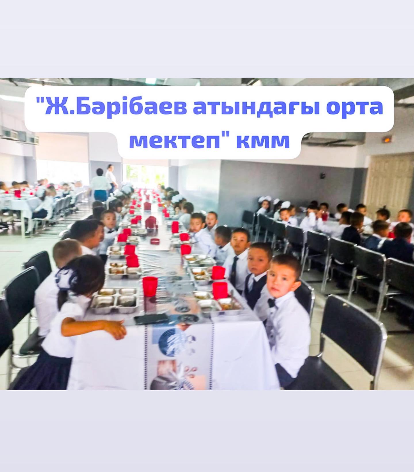 2023 жылғы 4 қыркүйектен бастап “Ж.Бәрібаев атындағы орта мектеп” КММ-де мектеп асханасы өз жұмысын бастады. Қазіргі таңда 1-4 сыныптардан 437 оқушы ыстық тамақпен қамтылды. » Жұбаныш Бәрібаев атындағы орта мектеп